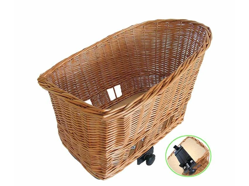 Dankzij de handige openingen in de mand kun je je trouwe viervoeter vastzetten en hoef je niet bang te zijn dat je hond uit de mand springt tijdens het fietsen. Deze naturel dierenmand wordt geleverd inclusief kussentje.